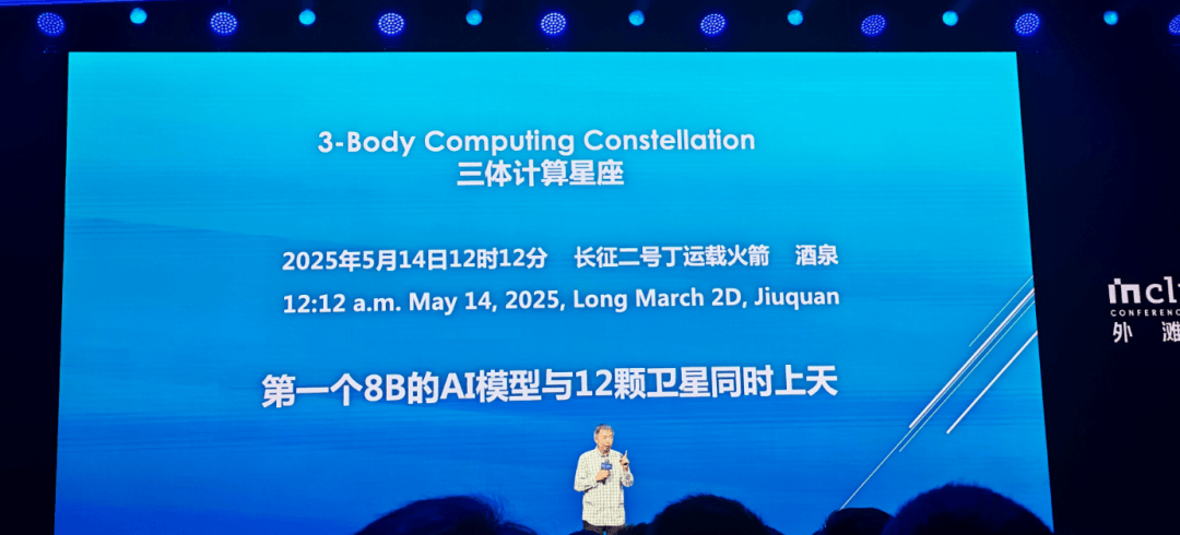 他还以自己参与的最新探索为例——今年5月,他所在的之江实验室利用“三体计算星座”计划, 首次将一个完整的8b大模型与12颗卫星同时送上太空,实现了卫星之间的互联互通与在轨智能计算。他还特意解释道: