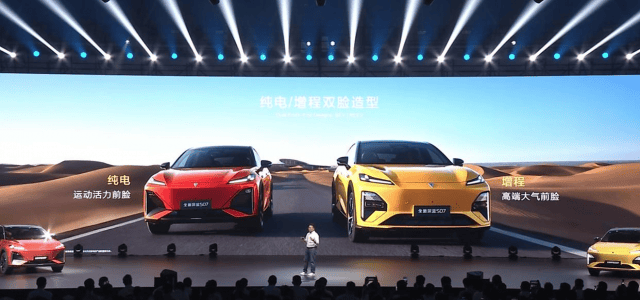 新款深蓝s07采用了独特的“双前脸”设计,纯电版车型展现出运动活力的风格,而增程版车型则呈现出科技时尚的气质。纯电版车型的弧面简洁利落,x棱线彰显出独特的态度和个性;增程版车型则通过灯组与格栅的设计勾勒出强烈的科技机甲感,下部分灯组位置的调整也让视觉层次更加丰富。