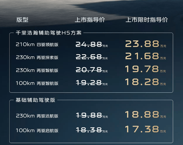 三者最大的区别集中在辅助驾驶层面,远航版用的地平线征程驾驶芯片,而智航版和探索版使用的是orin-y,支持千里浩瀚h5辅助驾驶系统上车。如果在意辅助驾驶的话, 那远航版到这里就淘汰了。