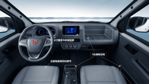 座舱方面,五菱扬光配备舒适超好开的司机级座舱,同级唯yi配置8寸悬浮中控娱乐屏,搭配3.5寸段码屏组合仪表、主副座椅四向调节、环保舒压科技织物座椅让久坐不疲倦。通过对门板、仪表台等处的挖切设计,五菱扬光车内共设7处储物空间,实现空间的多功能利用,成就舒适又好开的创富好搭档。