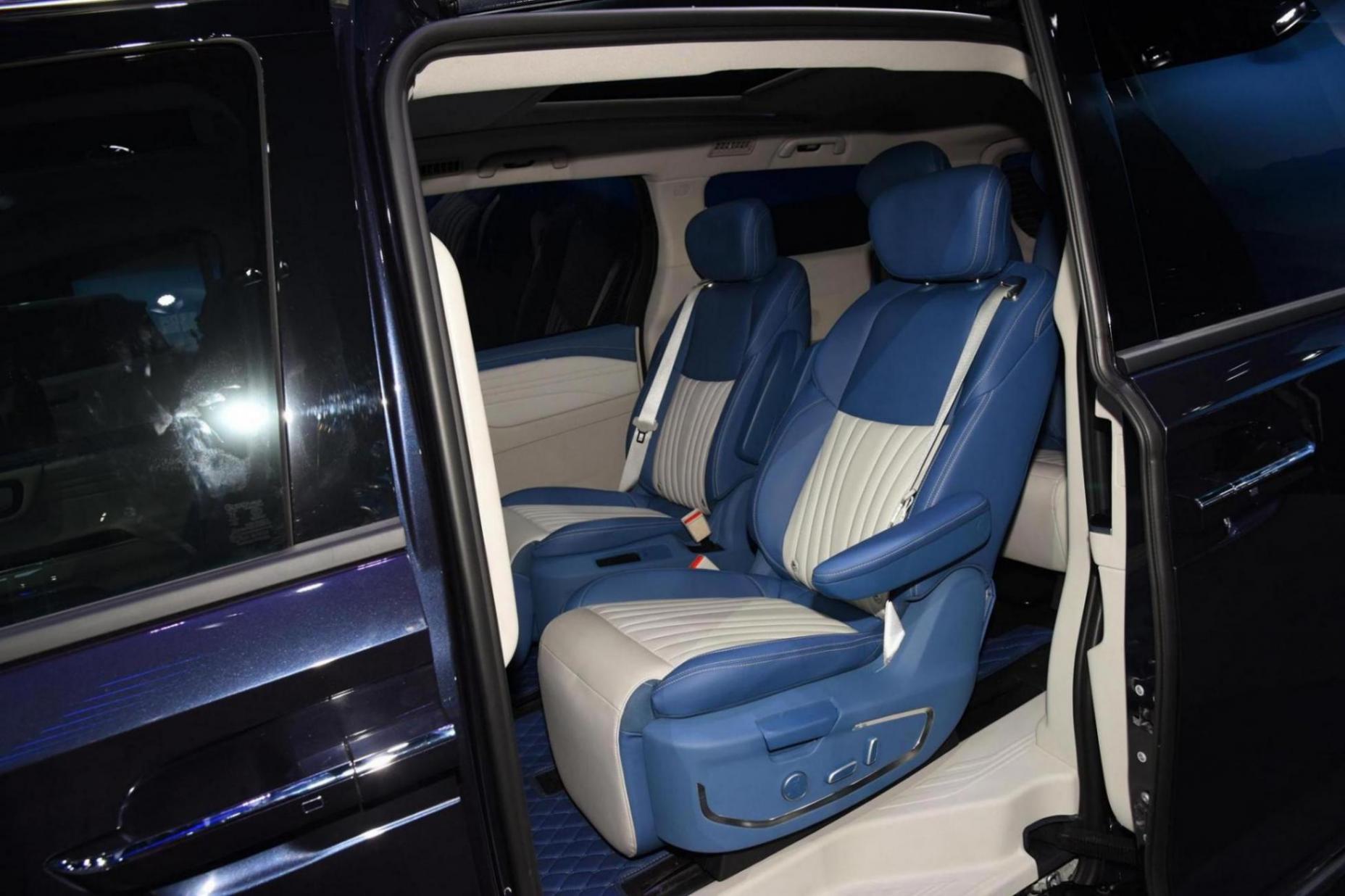 在外观方面,新车没有和此前的版本有任何明显的区别,前脸部分依旧是夸张的直瀑式大嘴格栅,外部有着复杂的镀铬条嵌套,贯穿式灯带连接了多边形大灯组,前保险杠部分还有贯穿式的下格栅和犀利的镀铬装饰包裹,显得相当的夸张。在车身侧面,新车也保持了高端商务mpv标志性的高大修长线条,但车头要更长一些,有一些smv的视觉效果,侧滑门,随处可见的镀铬装饰,悬浮式车顶,大尺寸轮毂等元素当然都不会缺席。