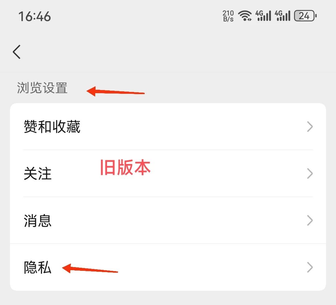 新版本将左上角【浏览设置】改为了【我的浏览】,同时将【隐私】更名为【设置】后移动到了【我的浏览】右侧,并且以蓝色字体进行了标记。