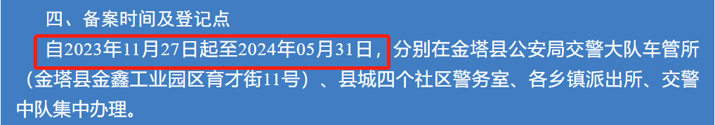 对于不符合国家标准,无法正常上牌上路的非标电动三轮车,甘肃金塔县也采取了过渡期管理。只要车主在2024年5月31日前为车辆备案登记,悬挂号牌上路,非标车辆还可以继续用三年。