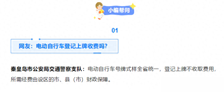 关于新国标电动自行车上牌的费用问题,前不久秦皇岛市交警支队明确表示,电动自行车号牌样式全省统一,登记上牌不收取费用,所需经费由设区的市、县(市)财政保障。目前全国大部分地区都有类似政策,新国标电动自行车上牌不收取费用。