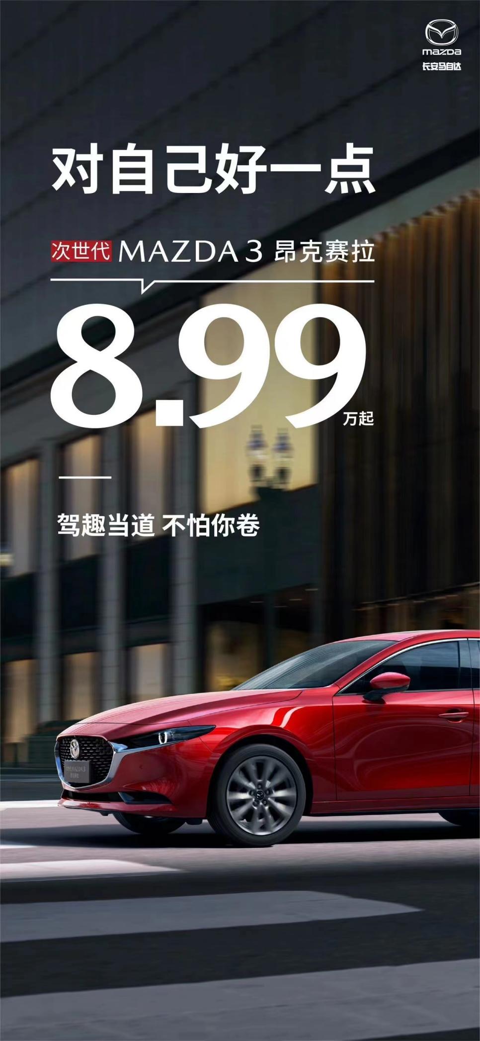 减价只为销量更高,这让小编想起了在早前频频受挫的长安马自达。在上一年,长安马自达面对价格战时,将马自达3昂克赛拉在年中不惜成本降价到8.99万元起,而这一次,长安马自达并没有作声响,没有传出一点降价的信息。而小编在一些车友群上发现,其实长安马自达在这次2024年的价格战中是有相关宣传的,但是给到的内容似乎不像其他降价车型那样有看点。在这次的宣传图中可以看到“对自己好一点”的字样,而下方则依旧是上一年的最低价格,同时还有一行小字写着:“驾趣当道,不怕你卷”。