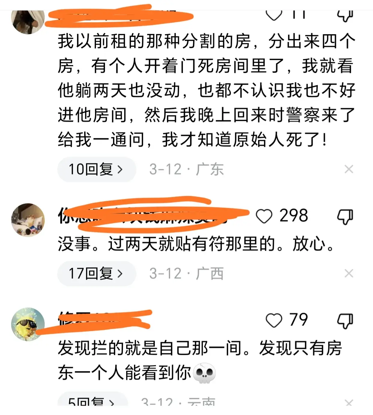 我看了这件事,心里也是觉得很害怕。除了邻居害怕,我觉得更难受的是房东。自己把房子出租给租客,就想着赚点钱,没想到闹出这样的事情。如果真的发生了不好的案件,事发地在自己家里,以后自己的房子会贬值,而且自己也不敢入住了。真的是损失太大了。