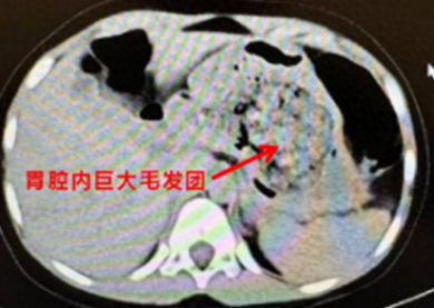 医生听到这里豁然开朗,原来在ct阅片的时候,发现了孩子胃里面有一团密度较高的团块,结合母亲提供的病史,医生断定孩子长期吃头发导致了胃内毛发成团,这也是这次腹痛的原因。