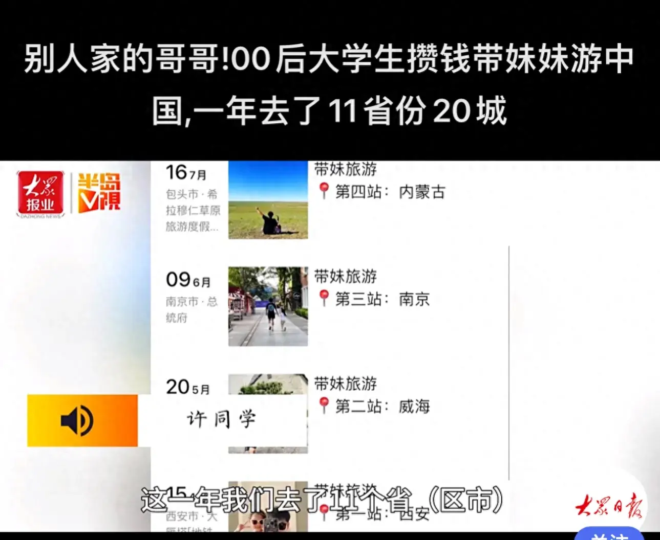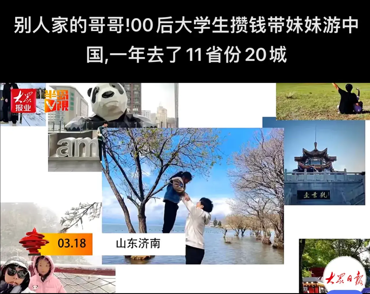 在手机游戏和社交媒体充斥着00后青少年的时代,有一位与众不同的大学生,他叫李明。与其沉迷虚拟世界,他却默默努力攒钱,带妹妹游历中国。这一年里,他们风尘仆仆地涉足了11个省份,20个城市,经历了一系列惊险刺激的冒险!