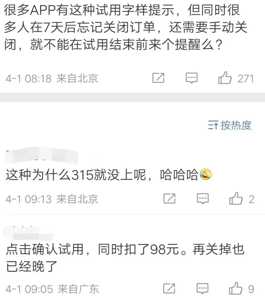还有的app,免费 试用期的界定模糊不清,你稍不注意,就被扣了一年的会员费。