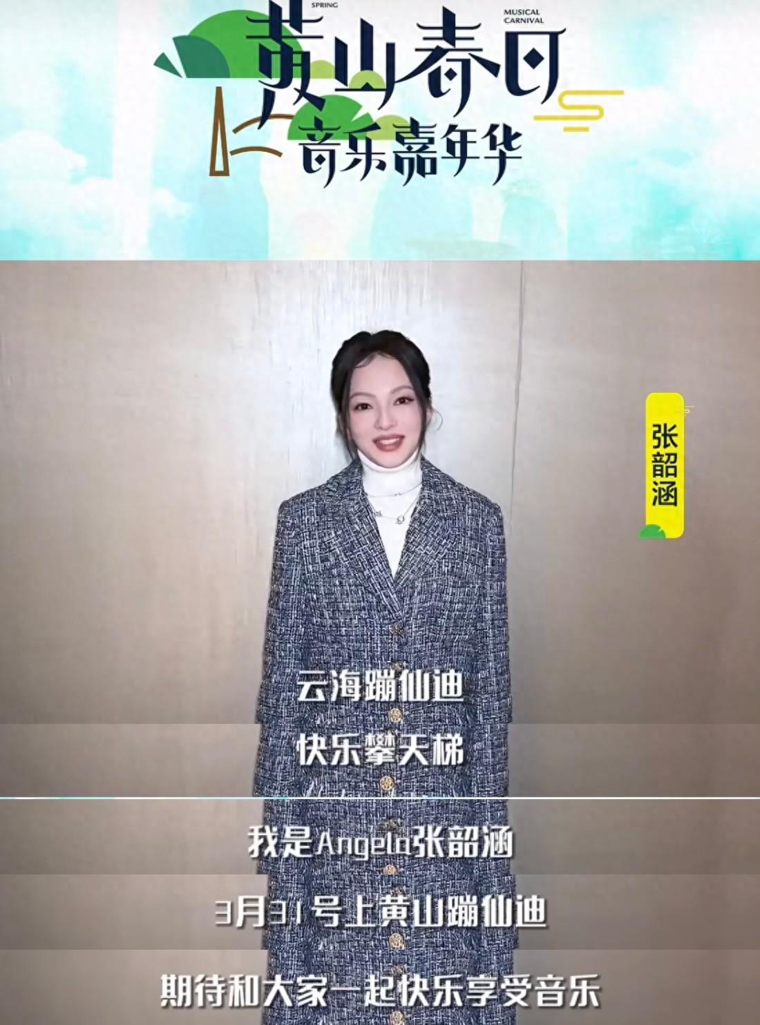 今年的黄山春日音乐嘉年华开始陆陆续续官宣了,张韶涵喊话大家,一起去“云海蹦仙迪,快乐攀天梯”。3月底,一起相聚相聚黄山,享受音乐。